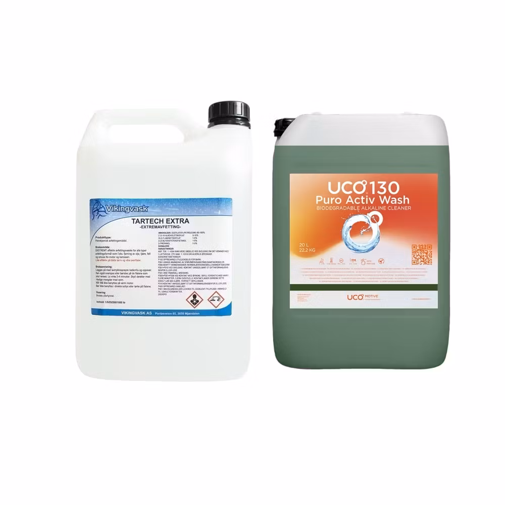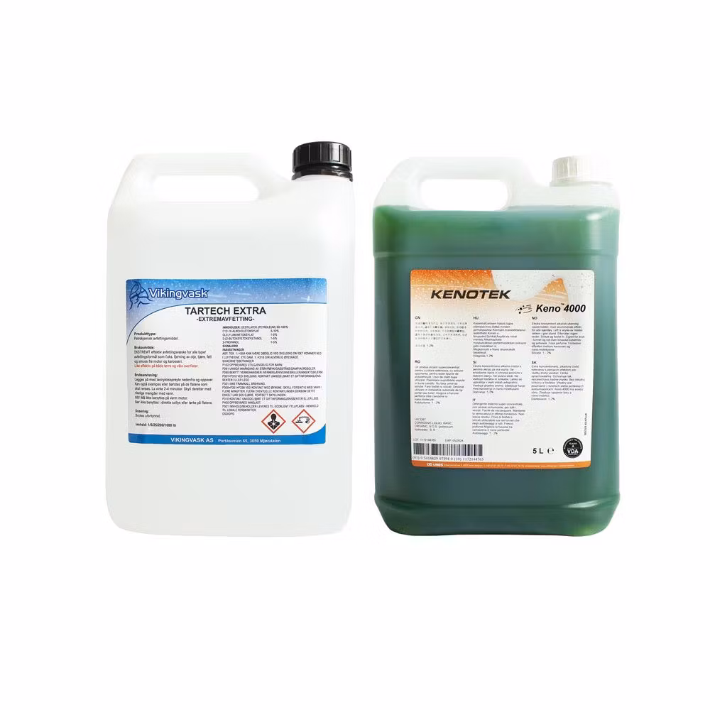 Avfetting på skumpakken inneholder5L tartech ekstra. (avfetting)5L Keno 4000 (Flytende skum)Slik vasker du best mulig:Påfør Tartech Extra på nedre del av bilen,
