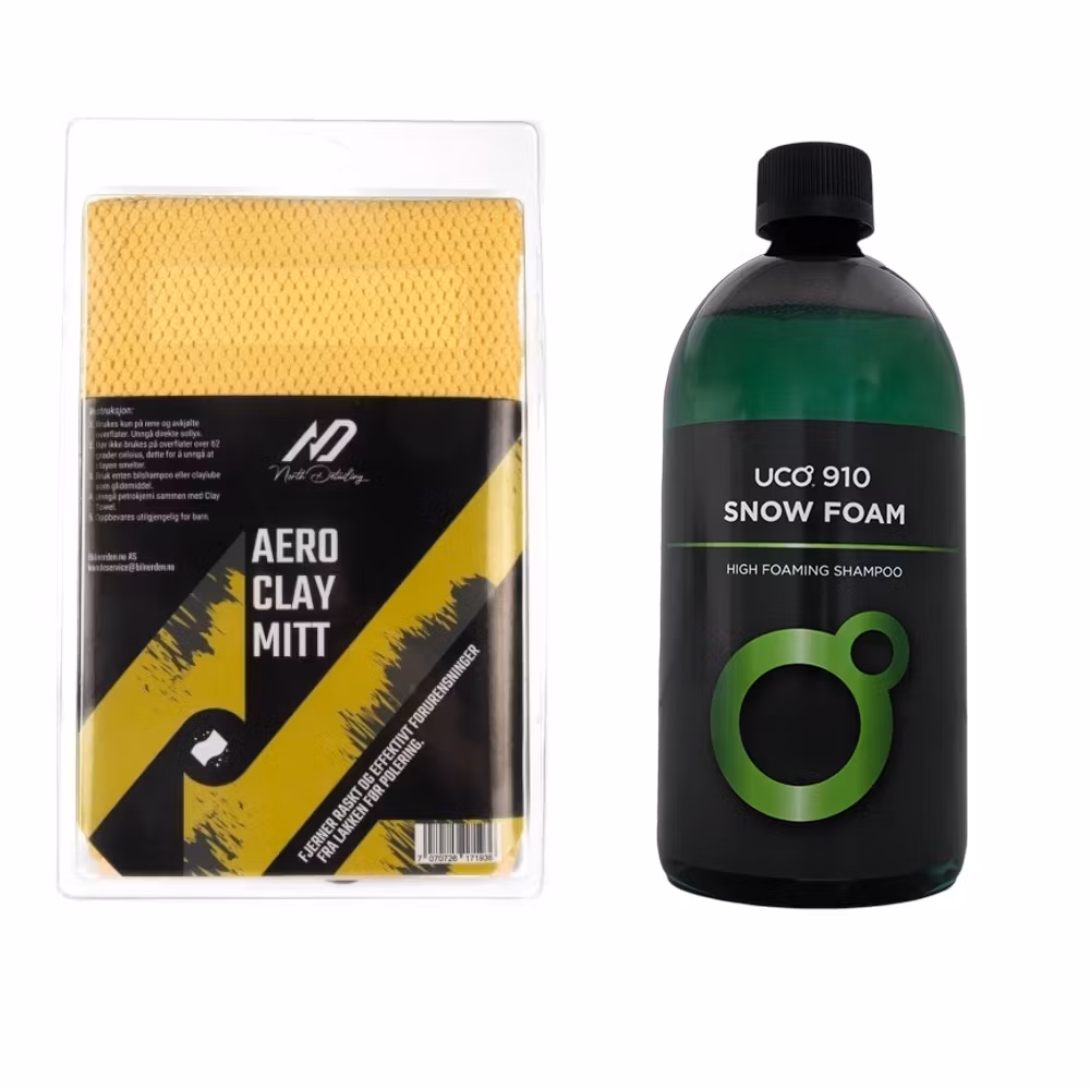 Clay Pakke, et must før du skal maskin polere bilen.Pakken inneholder:950ml UCO 910 Snow Foam ND Aero Clay mitt SikkerhetsdatabladSikkerhet/HMSLast ne